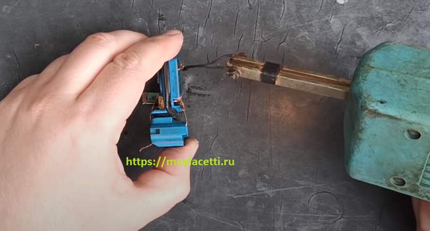 Важно! Изношенные щетки извлекайте вперед. То есть, не отгибайте заднюю часть щеткодержателя