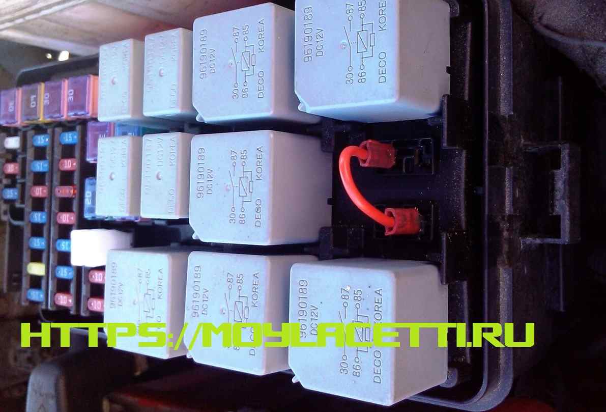 Очевидно, что для того, чтобы сделать стеклоподъемники без зажигания, достаточно удалить реле и перемкнуть между собой контакты 30 и 87. Допустим, на Шевроле Лачетти это выглядит так