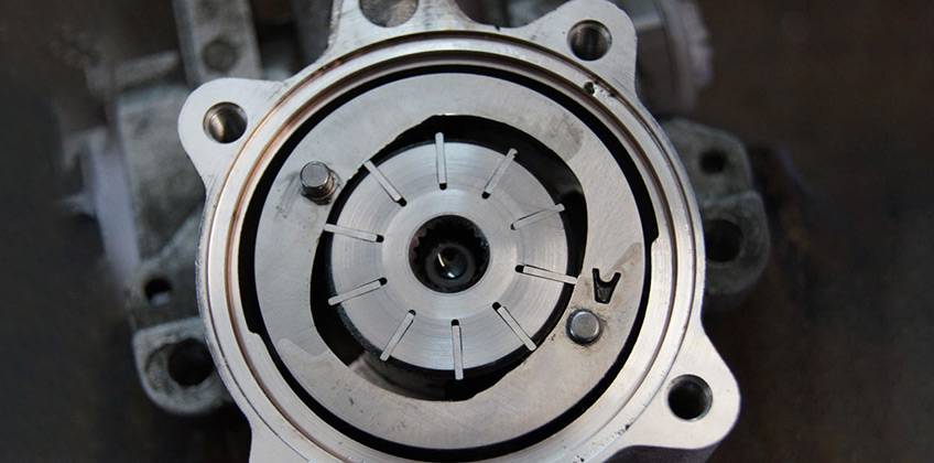 - Залипли лопасти. Грязное, старое, вязкое масло не дает пластинкам двигаться быстро и свободно, они буквально залипают в пазах, выдвигаются-задвигаются неравномерно, давление создается через раз. В этом случае насос разбирают, чистят рабочую пару, обязательно промывают систему ГУР и, естественно, меняют масло.