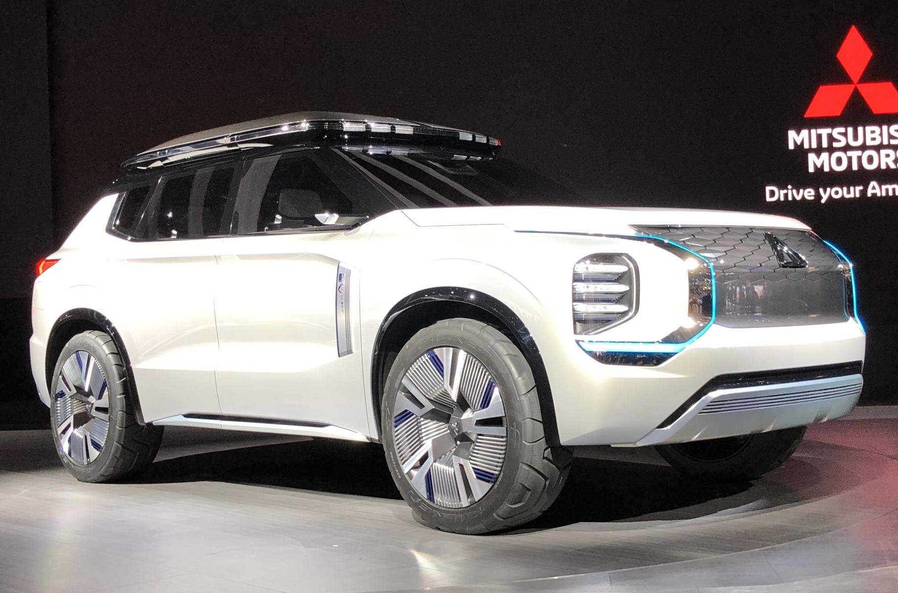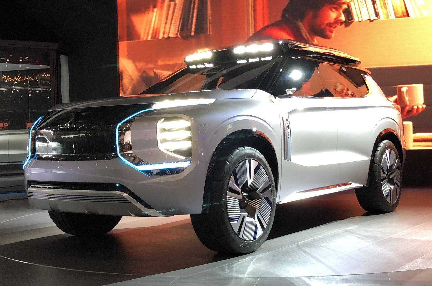 Концепт-кар Мицубиси Аутлендер 2020 предлагает абсолютно новый корпус с выразительной передней частью, горизонтальным капотом и экстремально узкими ходовыми огнями, расположенными над трехсекциоными фарами головного света.