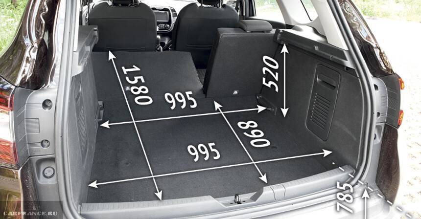 Посмотрим, как выглядит багажный отсек в моноприводной версии. Все размеры относятся к модели Каптур.