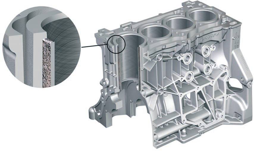 У мотора блок цилиндров выполнен из алюминия по технологии литья под давлением, с гильзами из серого чугуна. У него рубашка охлаждения открытого типа Open>Deck, что снизило расход масла, число компонентов и устранило вероятность возникновения воздушных пузырей. Также из алюминия по той же технологи изготовлены поршни, корпус распредвалов и некоторые другие элементы.