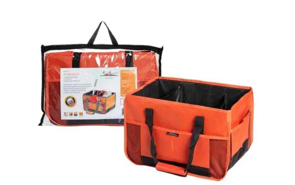 Золото этой категории рейтинга забирает удобная сумка для багажника AUTOPROFI TRAVEL ORG-30. Данный аксессуар отлично подойдет для хранения в нем инструментов, а также для рыболовных и охотничьих принадлежностей. AUTOPROFI TRAVEL ORG-30 имеет два довольно объемных отсека, а также два кармана-сетки и небольшой встроенный чехол для хранения смартфона. Снаружи AUTOPROFI TRAVEL ORG-30 обшит специальной огнеупорной тканью. Внутри органайзера используется ковролин. Данная модель весьма популярна в России, несмотря на высокую цену.