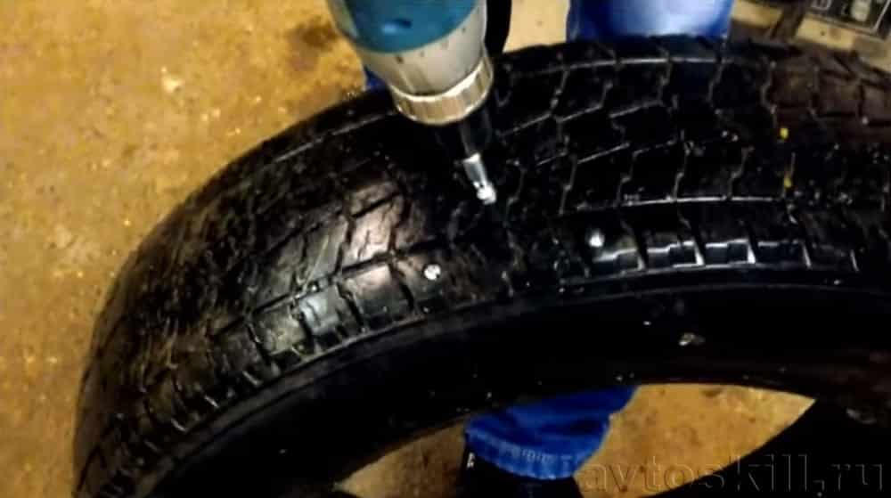 Ошиповка шин может производиться при помощи шуруповерта