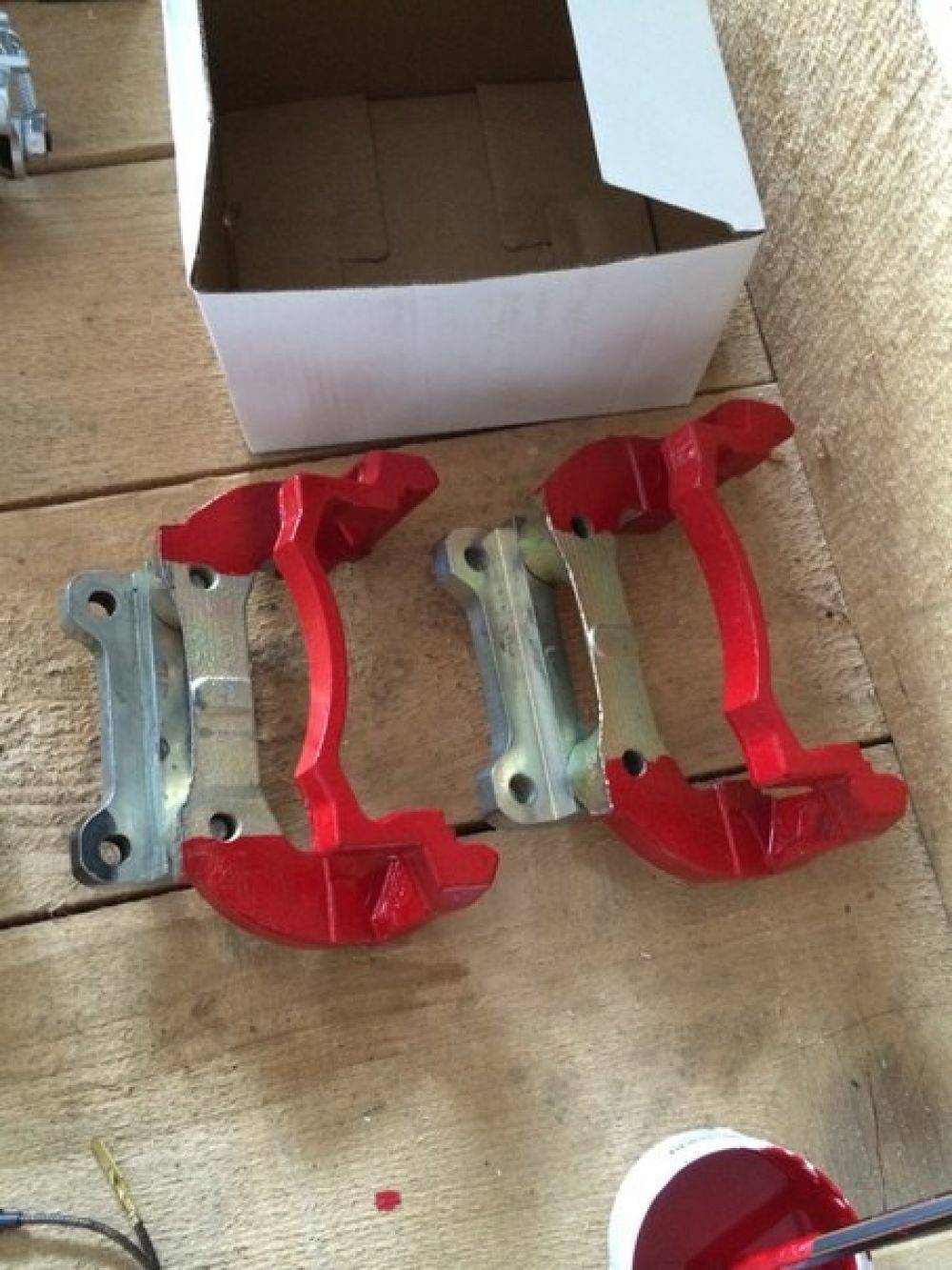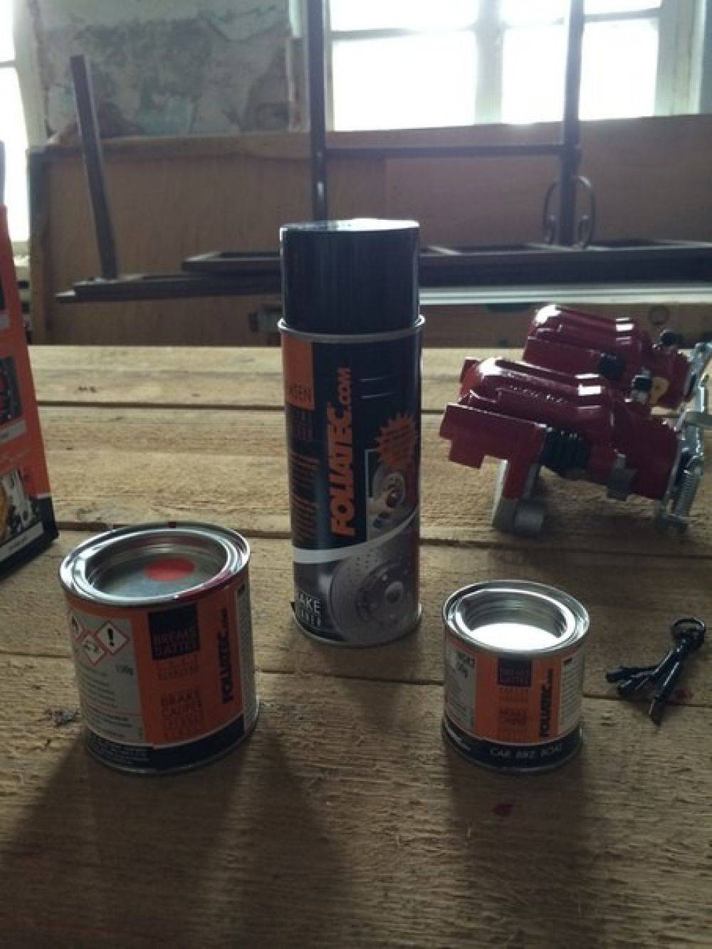 Недавно мною было принято решение перейти на 15е передние тормоза! Погуглив не один день, просмотрев кучу тестов и прочитав не меньшую кучу отзывов и разных чатов, решил остановиться на тормозных дисках и скобах АЛНАС! Приехал в магазин Белайс, и вот оно счастье, лежат, красуются на прилавке. Берем не задумываясь. Окраску супортов решил сделать комплектом краски Foliatec, цвет классически красный глянец. Комплет краски предназначен специально для супортов, выдерживает 300градусов в+.