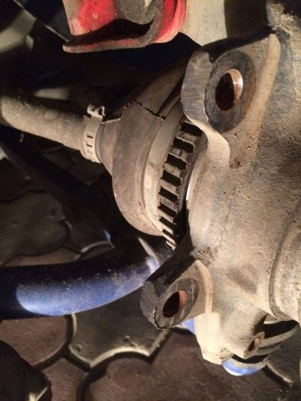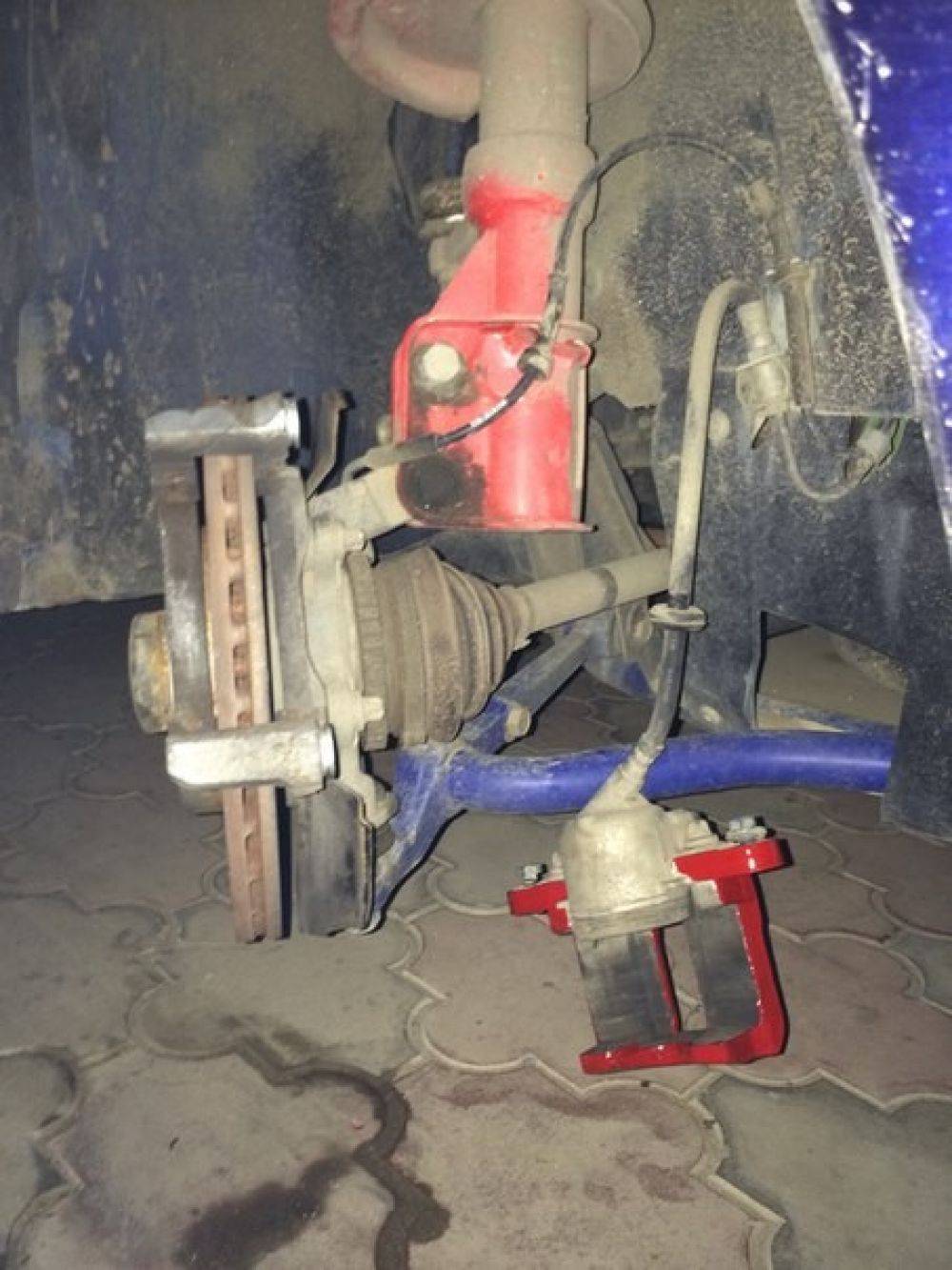 Отсоедините два болта, отвечающих за крепление скобы к поворотному кулаку.