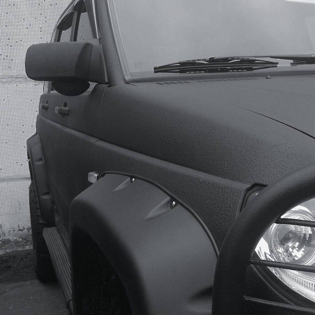 Самый суровый способ защиты кузова. Используется для кабин грузовиков, пикапов и внедорожников. Наносится как обычная краска и обеспечивает серьезную защиту от любого внешнего воздействия на кузов. Однако такой состав делает внешний вид специфичным, поскольку он матовый и шершавый.