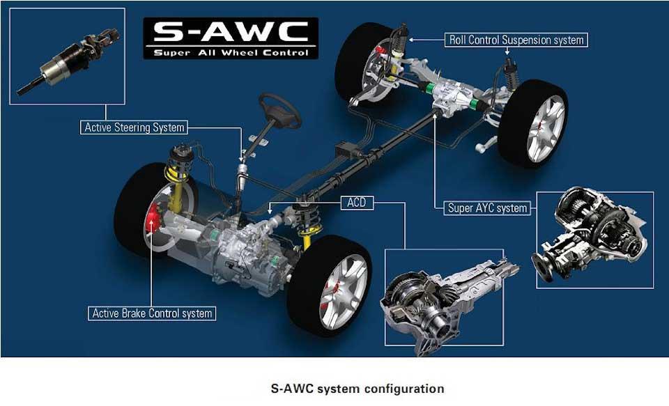 Маркировка S-AWC характеризует не только трансмиссию, а невероятную философию ведущих инженеров японского холдинга, подразумевающую внедрение тяги для управляемости и контроля над авто в самых различных условиях.