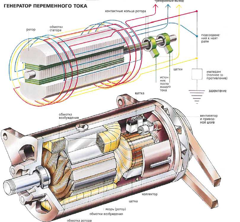 Еще одно разделение — асинхронные и синхронные генераторы. Они отличаются конструкцией ротора. В синхронном приборе катушка находится на роторе, а в асинхронном на валу есть специальные углубления, которые предназначены для вставки обмотки. Подробнее о них далее.