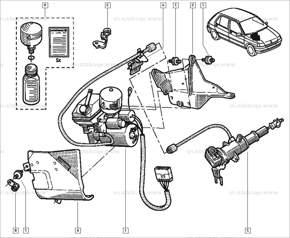 из dialogys: Штуцер для прокачки привода тормоза с двумя держателями Чтобы открыть клапан для удаления воздуха, опустите держатель (6) и поднимите держатель (7), вытянув на один щелчок.