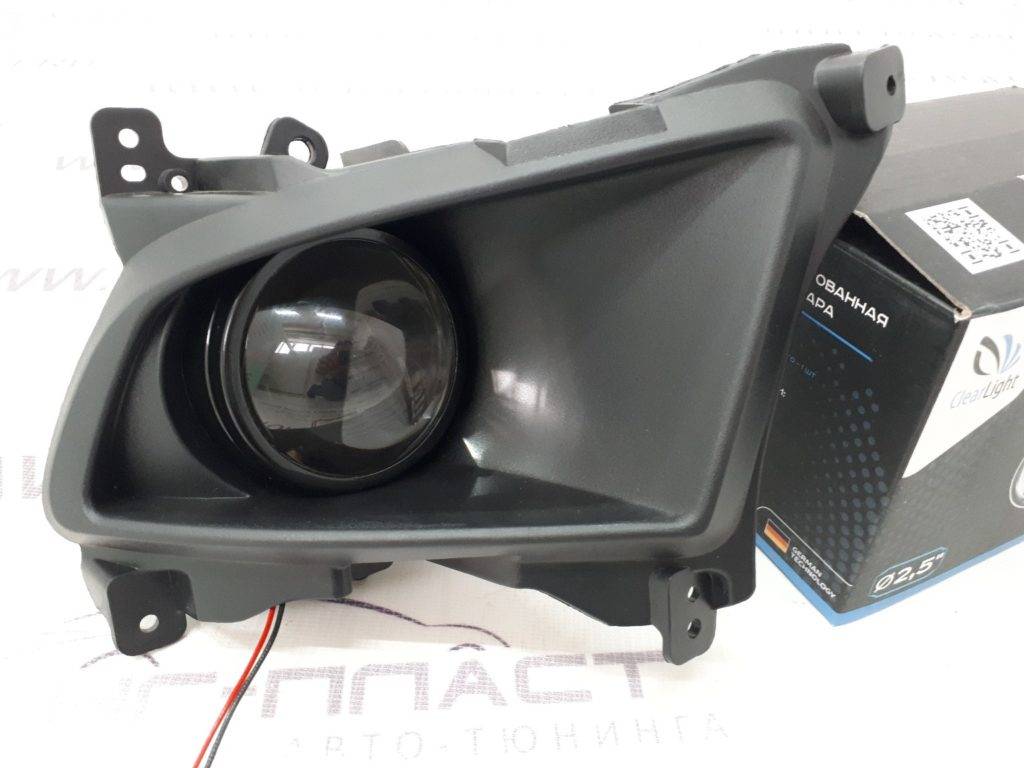 Одной из самых популярных китайских моделей ПТФ являются фары, которые полностью закрывают вырез под туманку, то есть имеют форму треугольника.