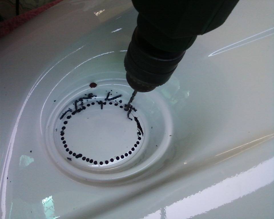 Сделать самостоятельно гнездо в бампере можно с помощью дрели и тонкого сверла диаметром 2–3 мм, часто располагая отверстия по контуру