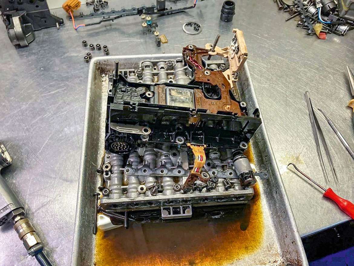 Само собой, все начинается с диагностики сканером и считывания ошибок для получения базовой информации о состоянии АКП. Затем осуществляется демонтаж коробки и уже механическая дефектовка, в процессе которой определяется уровень износа деталей и скрытые дефекты. Ну а дальше — непосредственно ремонт и восстановление.