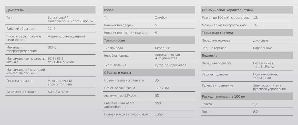Максимальная комплектация именуется «Элеганс». Ее начальная стоимость составляет 530 тысяч рублей. Это будет версия с механической коробкой передач. За автомат, как и в предыдущем случае, придется доплатить 40 тысяч рублей. Комплектация «Элеганс» имеет следующий набор опций: