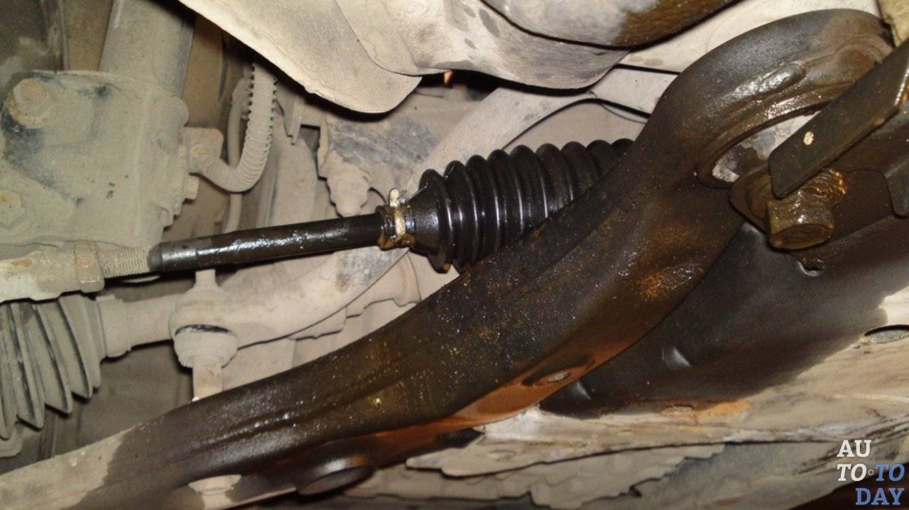 - На свои места устанавливаются рулевые тяги и затягиваются с установленным моментом затяжки. Детали смазываются, надеваются защитные гофры и затягиваются хомуты.