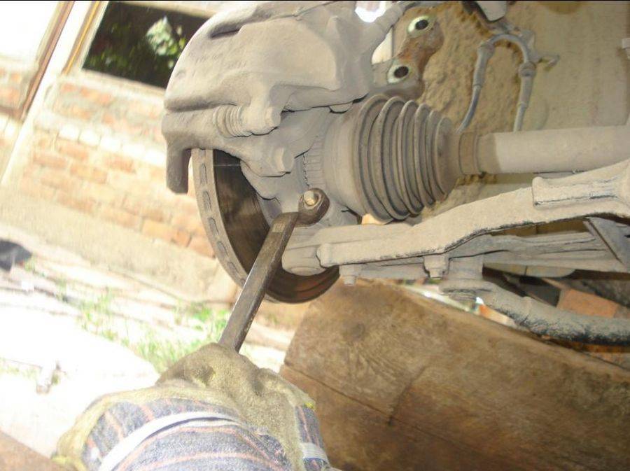 Предварительно снимается шаровая ключом на 16 от кулака, при этом колесо должно быть снято с Мегана