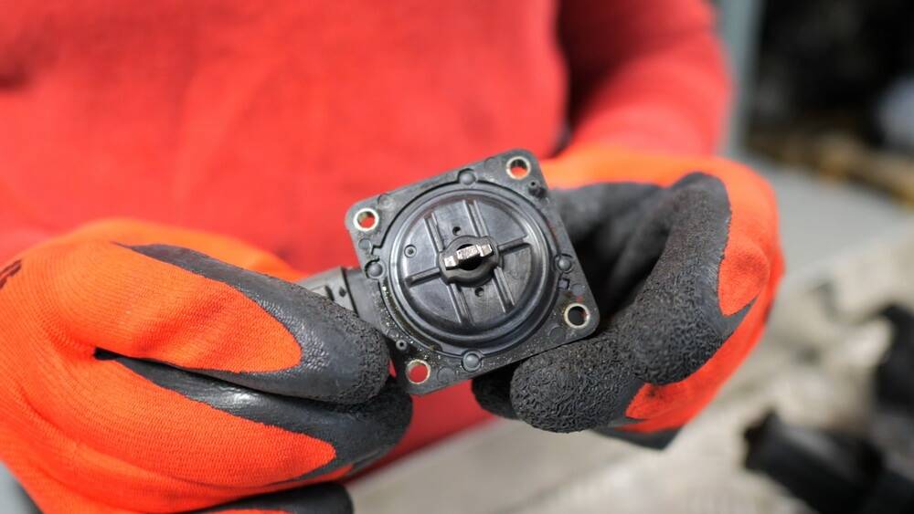 Следующий этап развития – клапан EGR с шаговым мотором. В шаговом электродвигателе ротор не вращается постоянно, а перемещается на определенный угол – шаг. Усилие ротора прикладывается к штоку через небольшой редуктор, с помощью которого поворот ротора превращается в поступательное движение штока. Таким образом по команде ЭБУ шаговый электродвигатель может очень точно перемещать шток клапана. Распознать клапан EGR с шаговым электромотором можно по присутствию 6-ти пинов в его разъеме – 2 плюса на обмотки и 4 минуса для управления шаговым двигателем.