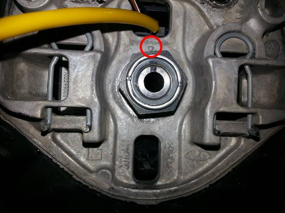 4. Для правильной ориентации руля, при его последующей установке, необходимо сделать метку. Возьмите маркер и сделайте на валу отметку точно напротив стрелки.