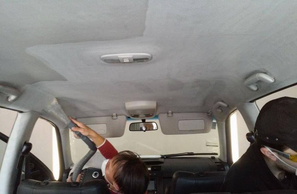 Прежде чем приступать к самой очистке, разделите мысленно всю поверхность потолка на несколько зон. Самый оптимальный вариант – зоны, каждая из которых соответствует 1 сиденью. Так вам будет удобнее работать.