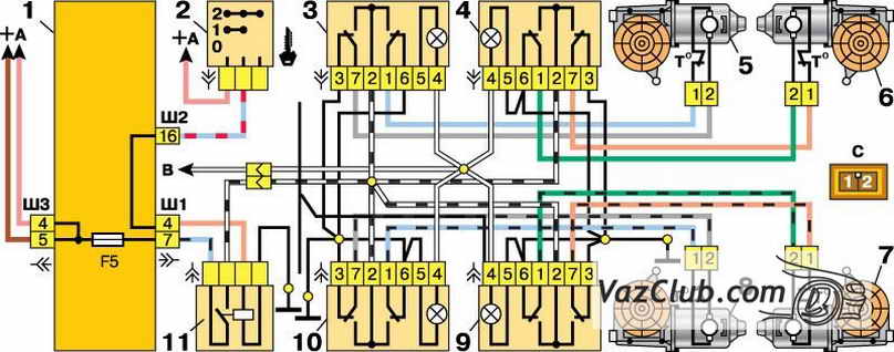 Напряжение к переключателям подается только при включенном зажигании через реле типа 904.3747-10, расположенное сзади монтажного блока ваз 2112.
