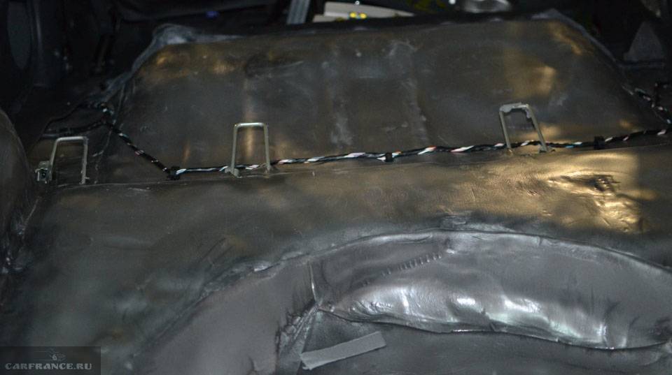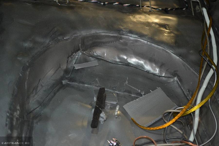 Обратите внимание как обработан подъем пола в ногах передних пассажиров. Перед обработкой следует снять колеса
