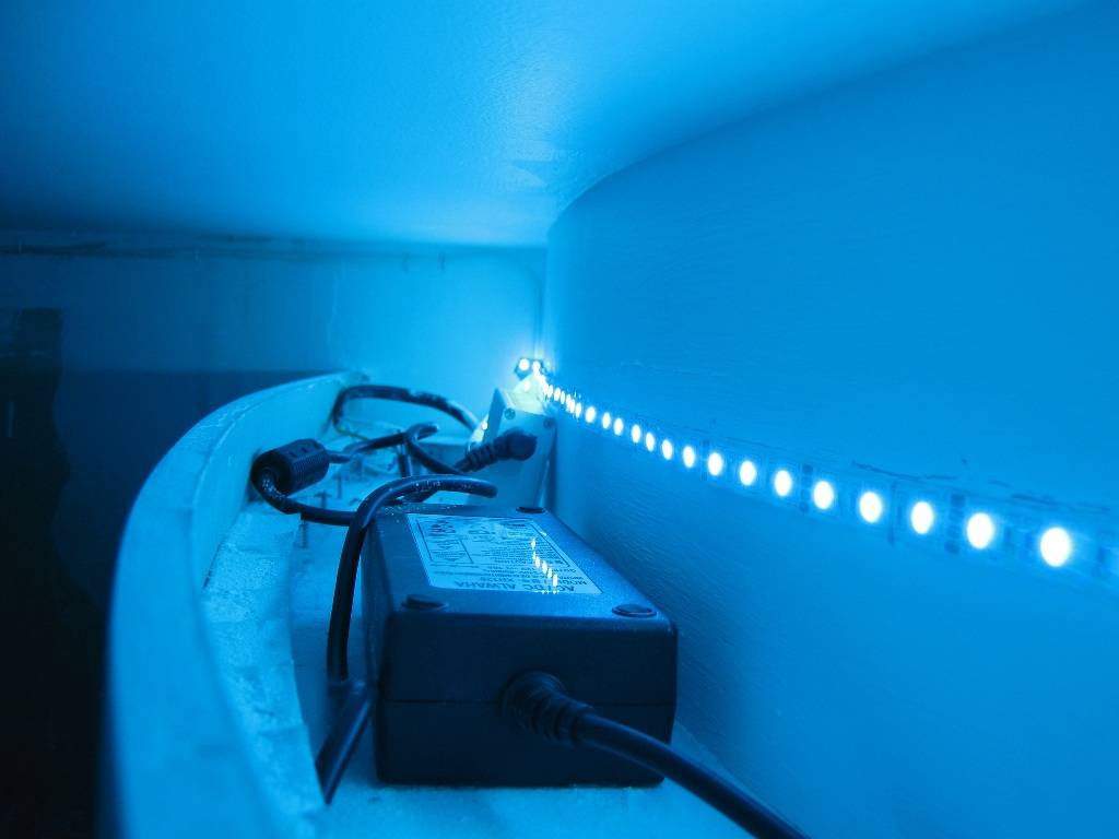 Чтобы устроить освещение в аквариуме, наклейте ленту по периметру крышки с внутренней стороны или в несколько рядов. Желательно, чтобы излучение было максимально близко к солнечному свету. Такая подсветка аквариума светодиодной лентой сможет стать источником света для водорослей.
