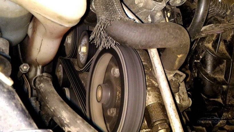 Это можно определить по подтеканию антифриза в районе помпы. Проверить подклинивание подшипников можно только, сняв ремень. Далее проверяют «легкость» вращения всех шкивов и роликов (за исключением коленвала).