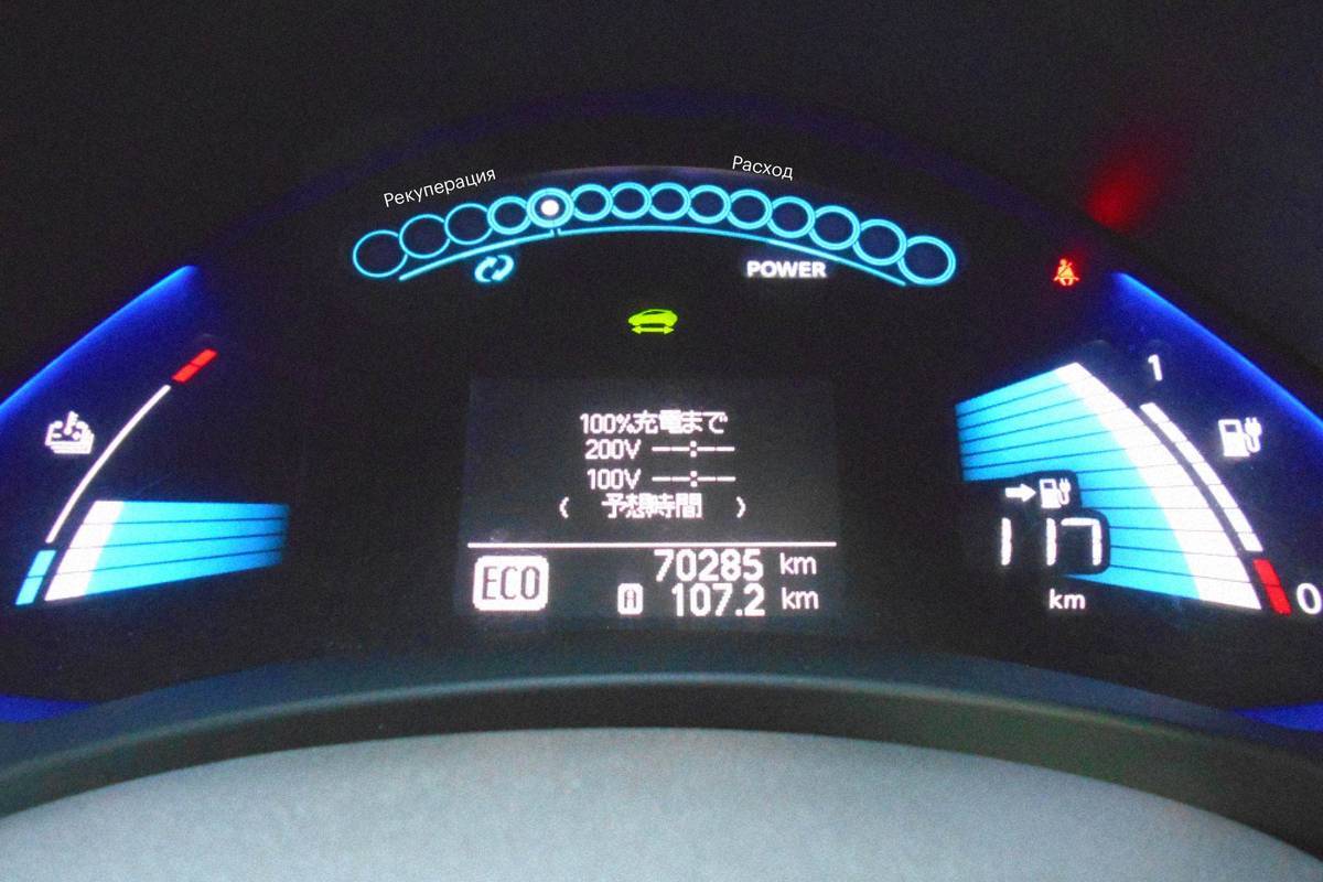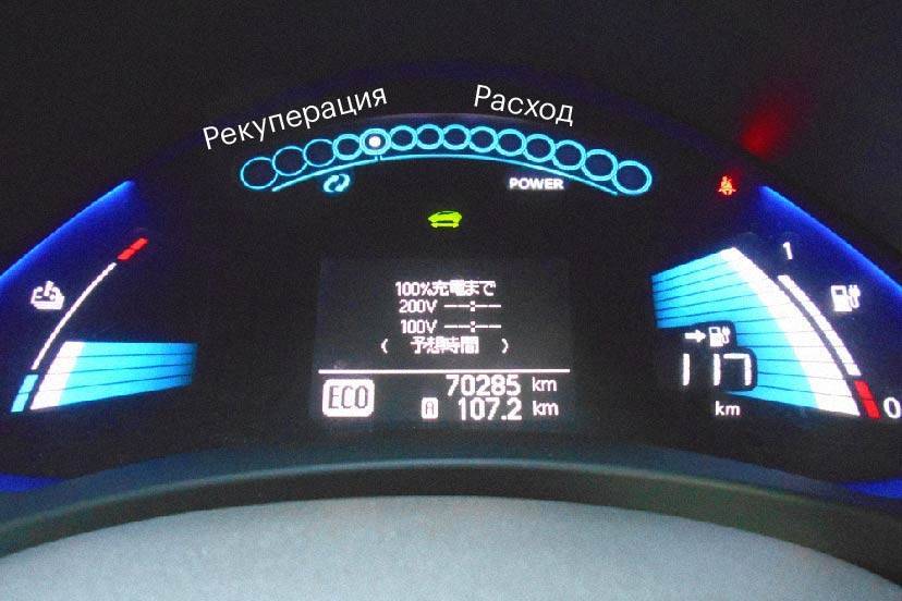 На приборной панели левая часть верхней шкалы — рекуперация и заряд батареи, правая — увеличение мощности
