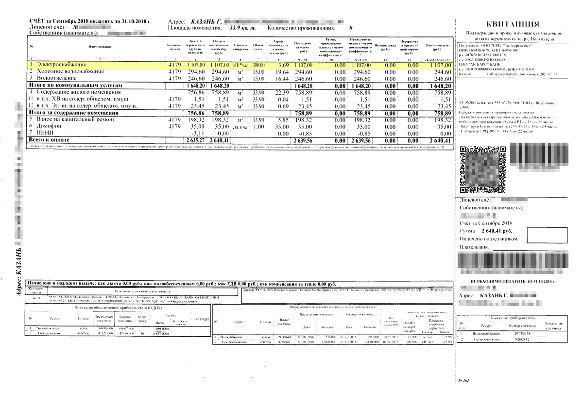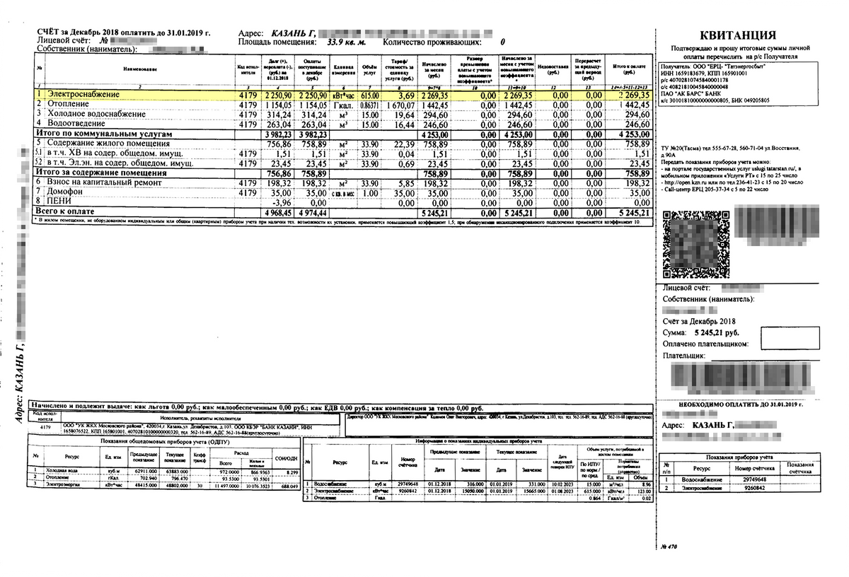 Квитанция за сентябрь, когда у меня еще не было электромобиля. Без него я заплатила за электричество 1107 Р