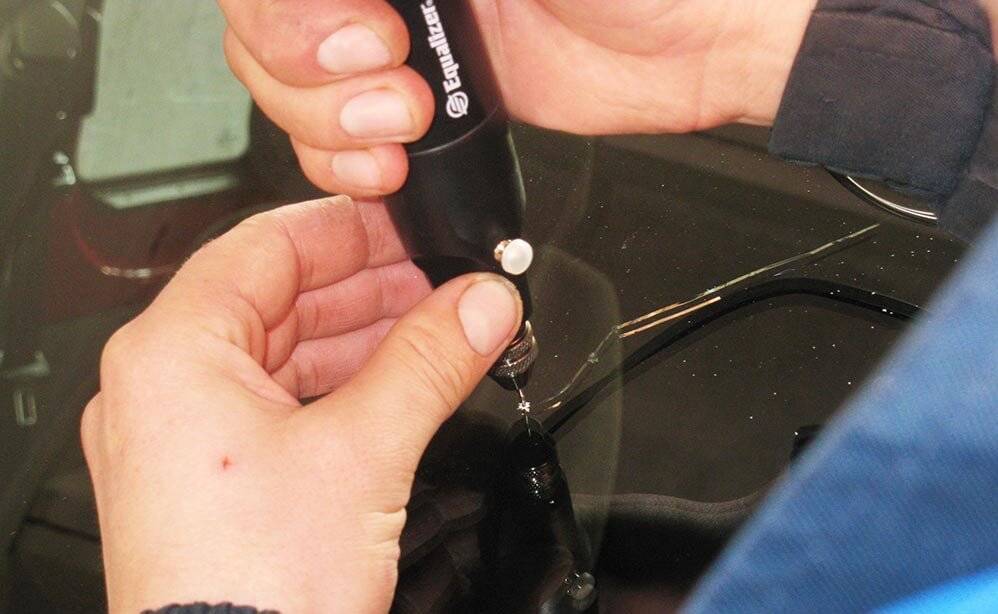 Процесс ремонта лобового стекла от трещин и сколов
