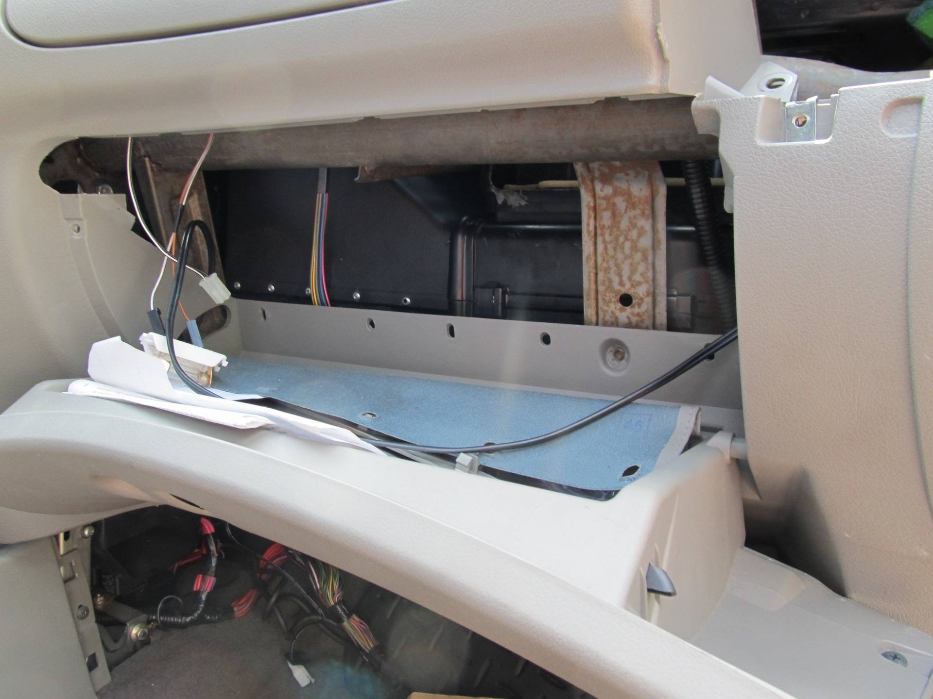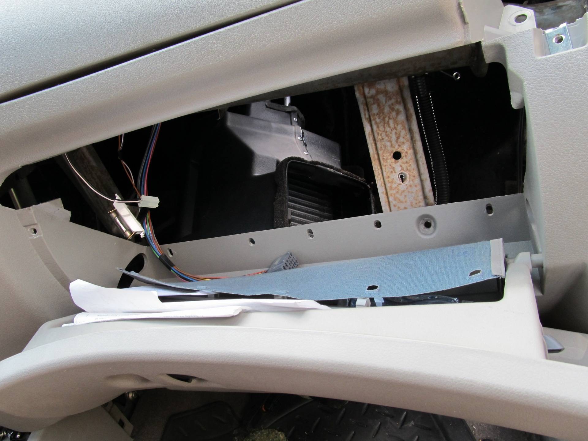 Лезем обратно в салон, там ситуация следующая, по скольку этот приёмник где ещё живёт мотор отопителя держат два самореза по бокам, до левого добраться без проблем, а вот до правого надо постаратся.