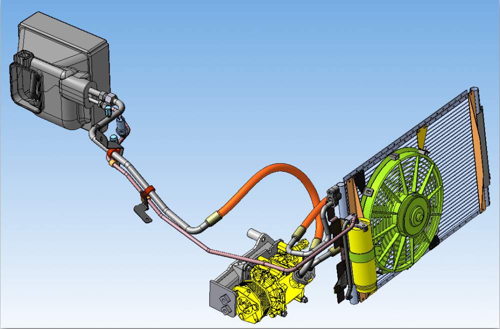 Охлаждение осуществляется посредством фреонового холодильного оборудования (кондиционера), встроенного в систему отопления автомобиля (отопителя климатической системы) и соединенного с узлами и деталями автомобиля монтажными и электрическими элементами (монтажный комплект). Отопитель может быть как штатной комплектации, так и оригинальной. Климатическая система работает в трех основных режимах: охлаждение, нагрев, осушка воздуха. Последний режим предусматривает работу кондиционера и отопителя одновременно и позволяет при высокой влажности в прохладную погоду (0°С…+10°С) избавиться от запотевания стекол, поддерживая при этом заданную температуру в салоне. При работе в режиме максимальной нагрузки кондиционер обеспечивает понижение температуры в салоне на 5°С…12°С относительно наружной температуры воздуха в зависимости от интенсивности солнечной радиации, влажности воздуха и количества человек, находящихся в салоне. Кондиционер представляет собой фреоновую холодильную машину, приводимую в действие двигателем автомобиля.
