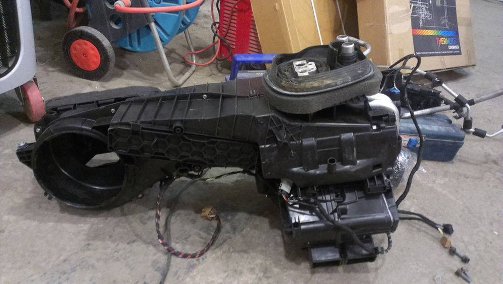 После обработки испарителем воздух переходит в радиатор, который находится внутри печки. Здесь происходит дополнительное его подсушивание.