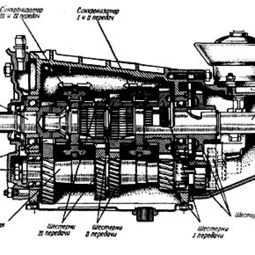 Схема КПП Ваз-2105 с 4 ступенями представлена ниже, и конструктивно она не отличается от модификаций 2101 и 2106:
