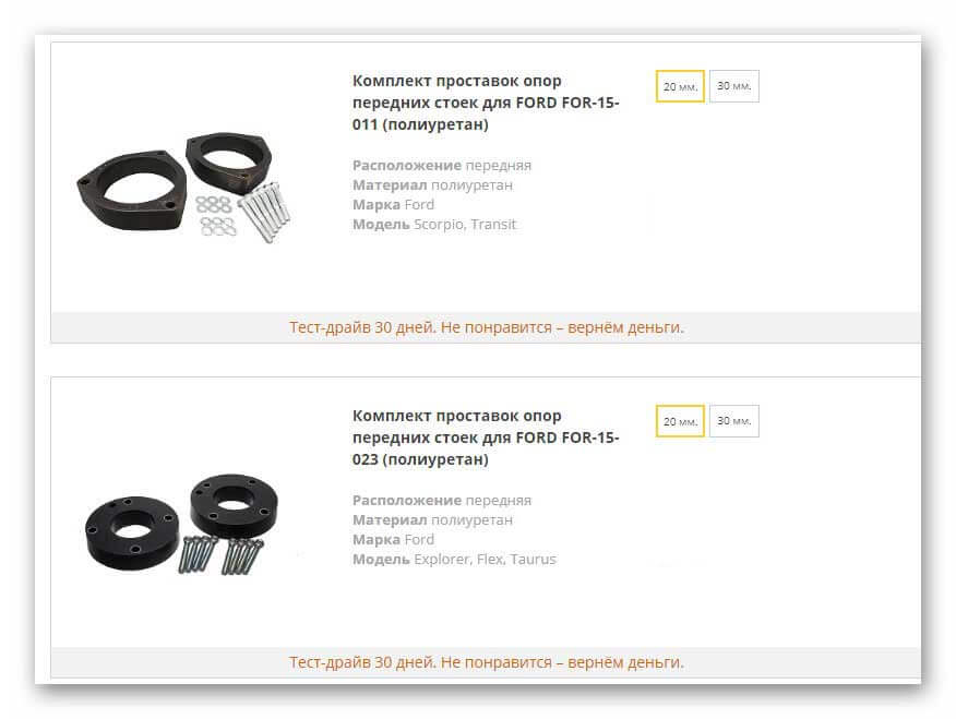 Судя по заявлению производителя, устройства прошли необходимые испытания и предназначены конкретно для подвески Ford Focus 2.