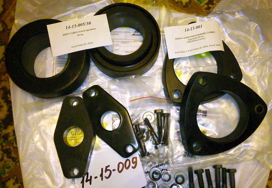 Следует отметить, что при проседании пружин, данный метод увеличения клиренса не сработает для Форда Фокус 2. Проблема в этом случае заключается в маленьком расстоянии между витками пружины. Проставки будут оправданы лишь в комбинации с хорошими пружинами.