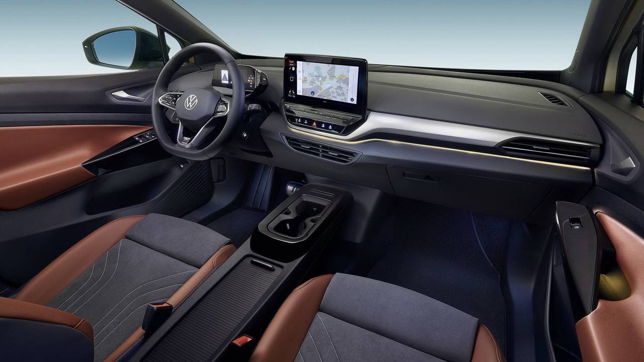 Общий дизайн интерьера аналогичен обычному ID.4, но отличаются декор и цветовая гамма.