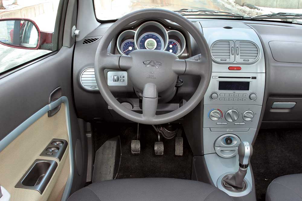 Пока автомобиль доступен лишь в одной спецификации – с пятиступенчатой МКПП и 83-сильным двигателем ACTECO объемом 1,3 л. (Euro 3) – совместная разработка австрийской компании AVL и Chery. Двигатель хорош – в сочетании с механикой позволяет ехать резво в городе и вполне спокойно – по загородной трассе. В цифрах динамика выглядит так: 13 секунд до «сотни» при 156 км/ч максимальной скорости. Расход топлива в смешанном цикле – 6.5 литров на сто километров. Если бы еще не отчаянный вой, наполняющий салон при ускорениях… Зато в городской толчее работа руля с гидроусилителем даже понравилась – не слишком мягко, достаточно информативно, хотя кто-то может посетовать, что на парковке руль тяжеловат.