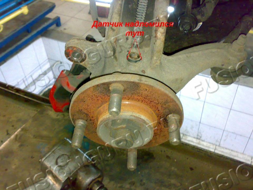Снимаем тормозной диск и убираем его в сторону, мы получили прямой доступ к датчику ABS, откручиваем его головкой или ключом на 8: Затем пассатижами аккуратно расшатываем и вытаскиваем датчик.