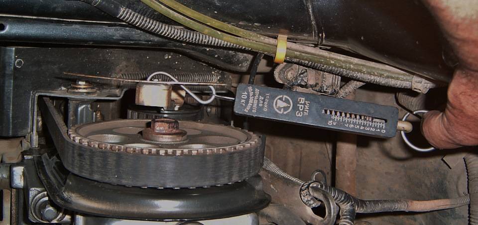 Перед регулировкой необходимо выбрать слабину тянущей ветви ремня