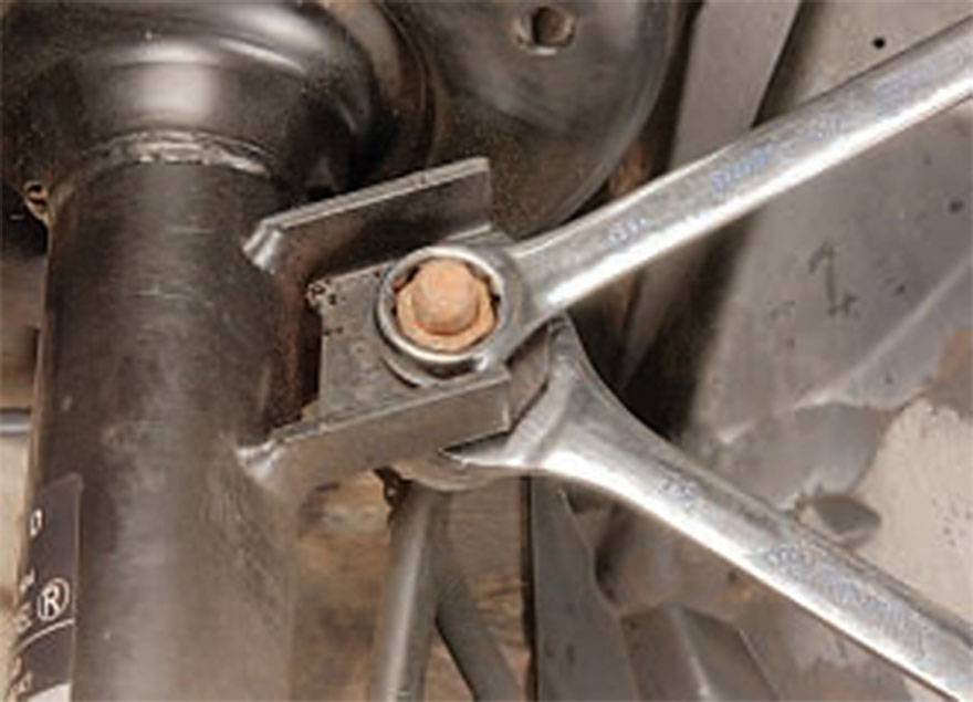 - Откручиваем болт крепления подрамника, но не до конца, оставляем несколько витков с двух сторон
