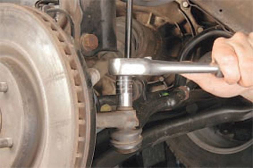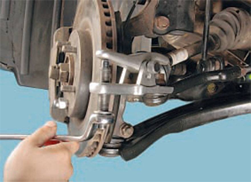 - Надежно зафиксируйте корпус рейки и открутите рулевые тяги (на резьбовой муфте есть проточки для рожкового ключа).
