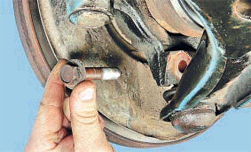 - Открутите контргайку и гайку регулировочного механизма, достаньте из посадочного гнезда шайбы и прижимную втулку.