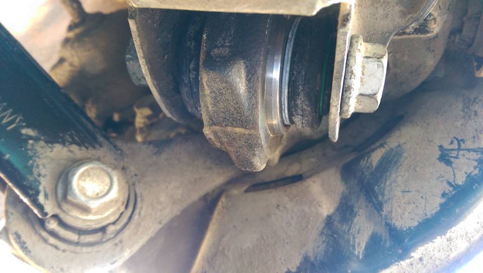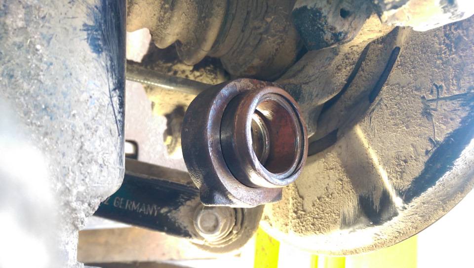 На это у нас наверное ушел час. С учетом поиска хлама для съемника и всего прочего. Дальше надо было доставать внешнюю обойму плавающего. И вот тут мы прилипли…Все прикипело на столько сильно, что нас стала посещать мысль о том, что машина так и останется стоять неделю на эстакаде, пока я не найду нормальный съемник.