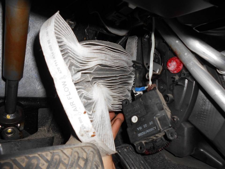 Примечание с форума:ПРАВИЛЬНО заменить салонный фильтр не так просто.Почему? Потому что нужно предварительно снять привод заслонки “на тепло” и педальный узел!Можно запихнуть и без съема, как делают на “официальном” сервисе…Только при такой установке фильтр безбожно комкается и не расправляется…оставляя прорехи. От пыли, может сломаться испаритель кондиционера.