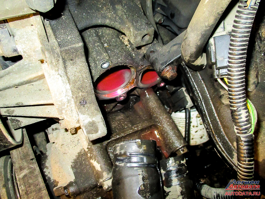 Почему два? Прокладка термостата. Устанавливаем новый термостат и проводим сборочные работы, которые обратные процессу разборки.