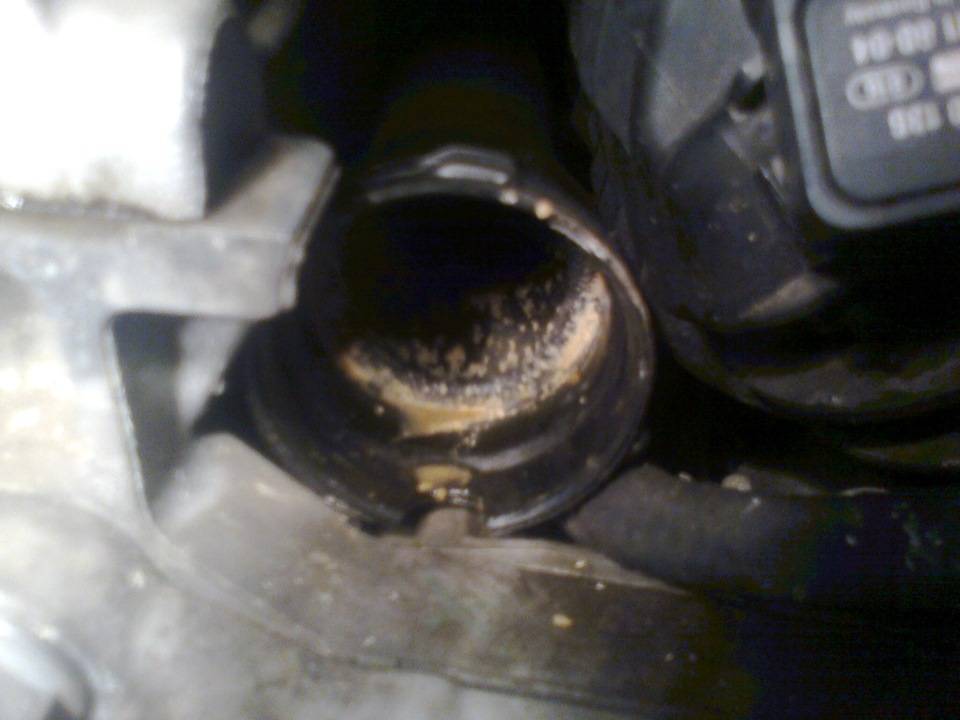 Откручивая резонатор и впускной воздушный канал, находят интересующую трубку.