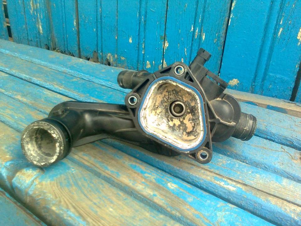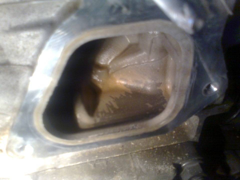 Углубление в корпусе коробки под темостатом, сюда стекал антифриз.