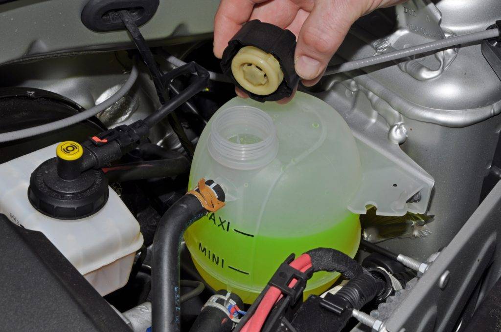 - залить новый антифриз, используя расширительный бачок или верхнее отверстие радиатора;