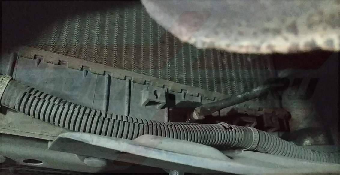 С нижнего торца радиатора чуть правее от центра (если смотреть по ходу движения) находим сливной штуцер и одеваем на него трубку. Можно и не одевать, но так меньше жидкости разольётся. Второй конец трубки направляем в ёмкость для слива жидкости.